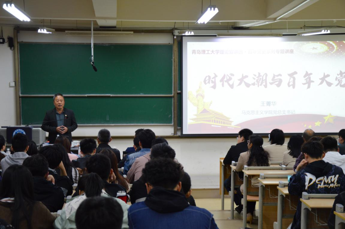 王菁华教授以《时代大潮与百年大党》为题,围绕“学史明理,学史增信,学史崇德,学史力行”的具体要求,从百年党史开天辟地、改天换地、翻天覆地、惊天动地四个发展阶段进行论述,深入阐释回答了中国共产党为什么“能”、马克思主义为什么“行”、中国特色社会主义为什么“好”等重大理论问题。
