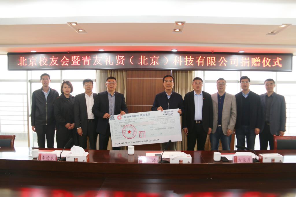 4月19日,北京校友会暨青友礼贤(北京)科技有限公司捐赠仪式在科技楼1908会议室举行。北京校友会副会长兼秘书长、中奥投体育发展有限公司副总裁于涛,北京校友会副会长、中汇博恩(北京)科技有限公司董事长,青友礼贤(北京)科技有限公司执行总裁方俊彦,北京校友会副会长、邦杰兴投资公司总经理,青友礼贤(北京)科技有限公司总经理李清泉等一行5人来校,向学校捐赠校园绿化专项资金。