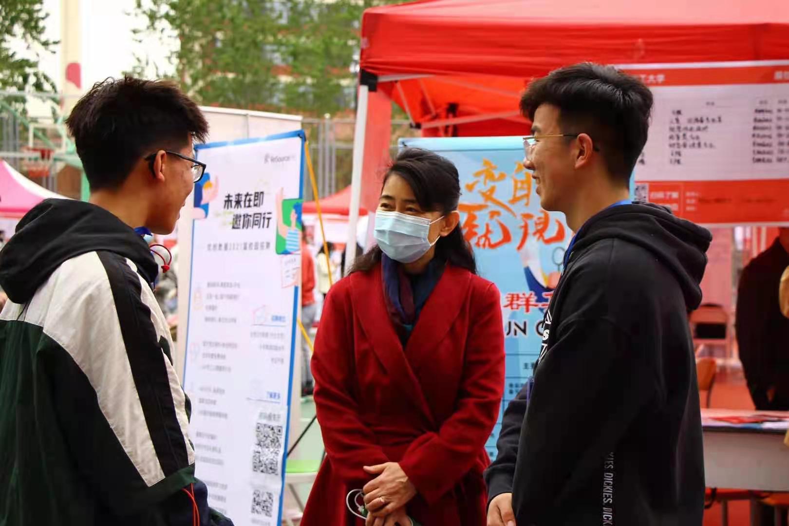在学校党委、行政的坚强领导下,学生处打造“五纵四横两联环”就业工作体系,以保障学生“高质量充分就业”为目标,通过加强考研自习室建设和考研调剂指导等基础性工作,不断营造浓郁学习氛围,厚实学风建设,深耕就业质量。近年来,毕业生就业率持续稳定在90%的基础上,毕业生深造率逐年攀升,2021年再创新高;强化就业思政教育,第一课堂与第二课堂密切衔接,交汇融合,从思想上解决慢就业、不就业现象。结合建党100周年和党史学习教育,积极探索“就业+思政”就业理念,本次双选会会场由多个展位组成了红色的“100”字样,致敬中国共产党百年辉煌。双选会后,学生处将继续邀请知名校友讲述创业史、奋斗史,设立“校友企业招聘快线”,发挥校友号召力,带动更多毕业生就业创业,确保完成今年就业工作任务。