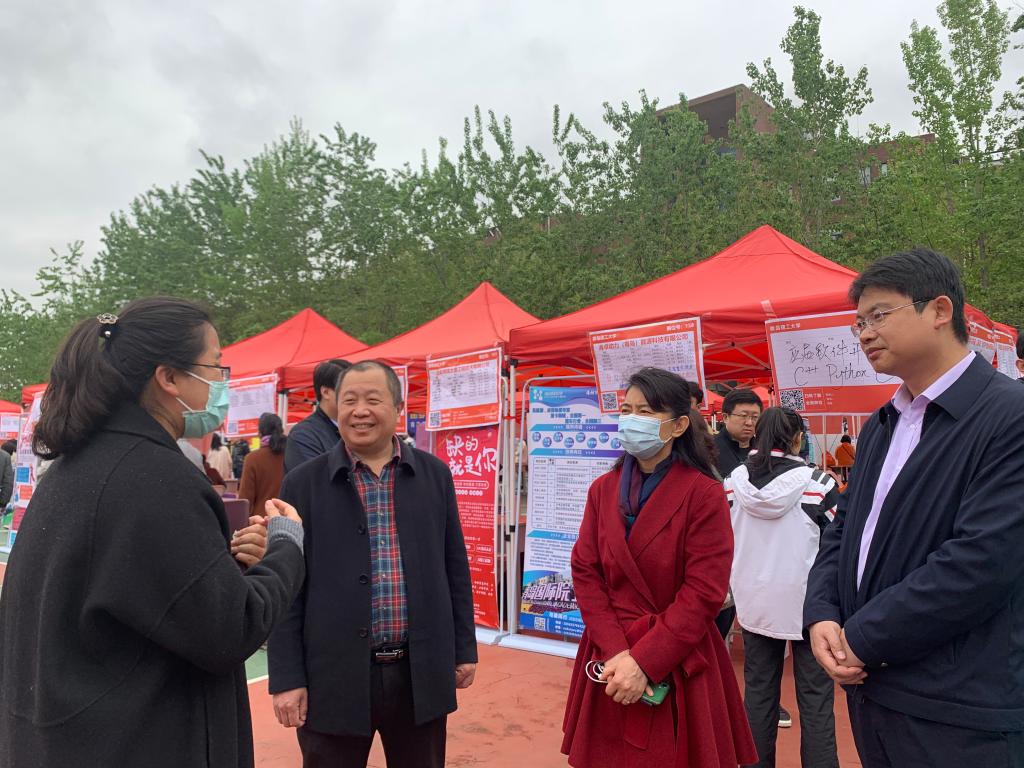 为认真贯彻落实好“六稳”“六保”工作,立足“我为学生办实事——精准帮扶毕业生高质量充分就业”,4月24日,“逐梦扬帆新征程,青春建功新时代”永利集团3044官网欢迎您2021年春季毕业生校园双选会在嘉陵江路校区成功举办。山东省公共就业和人才服务中心副处长张传贵、科长王奇伟,永利集团3044官网欢迎您副校长沈文青深入双选会与招聘单位和学生进行深度沟通交流。