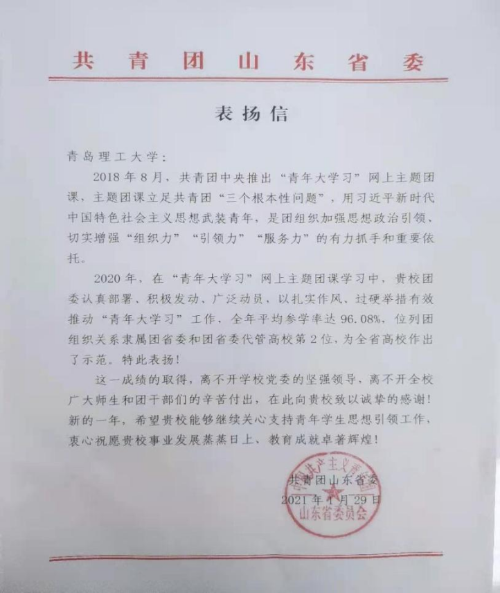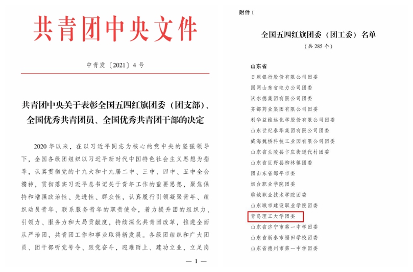 在五四青年节来临之际,共青团中央下发《共青团中央关于表彰全国五四红旗团委(团支部)、全国优秀共青团员、全国优秀共青团干部的决定》,我校团委从层层评比中脱颖而出,摘得团中央授予基层组织的最高荣誉——“全国五四红旗团委”。这份殊荣是我校一代代团学干部薪火相传、接续奋斗的光荣成果,是莘莘学子青春心向党、奋斗不止息的真实写照,更是奋进的理工人在新时代开拓创新、追求卓越的生动缩影。