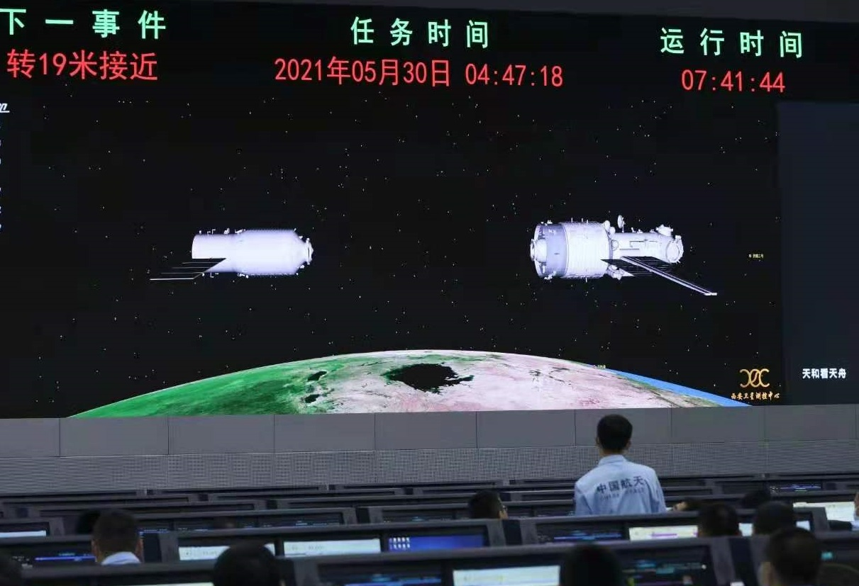 5月30日5时01分,我国天舟二号货运飞船与空间站天和核心舱圆满成功地实现了自主快速交会对接。我校复杂网络与可视化研究所航天可视化团队研发的三维实时航天可视化技术继天宫一号和神舟八号、九号、十号的交会对接、天宫二号与神舟十一号的交会对接、天舟一号货运飞船与天宫二号自主交会对接等工程任务,再次为天舟二号货运飞船与天和核心舱的全自主快速交会对接任务的飞行控制与指挥保驾护航,相关系统运行正常。