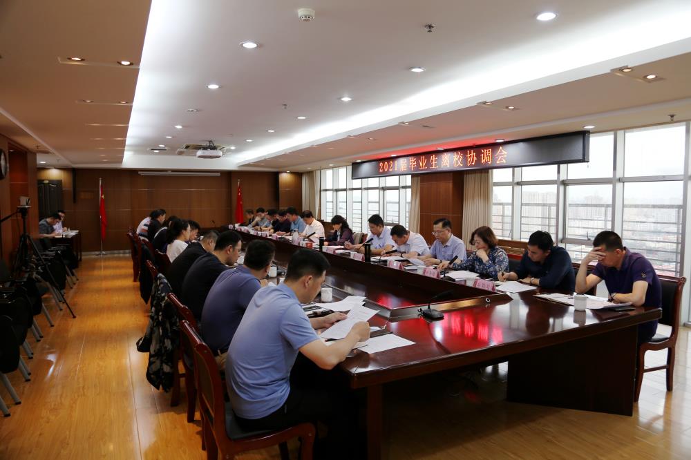 6月15日,学校在图书科技楼1908会议室召开2021届毕业生文明离校工作协调会,党委常委、副校长沈文青主持会议并讲话,相关职能部门负责人及各学院党委(党总支)副书记参加会议。