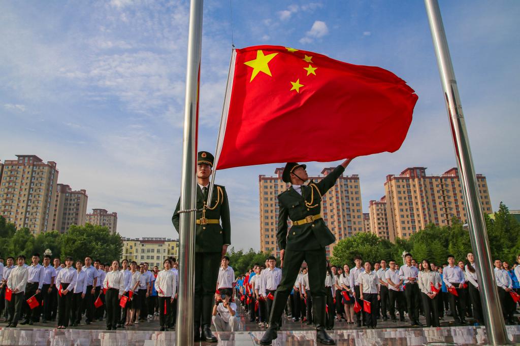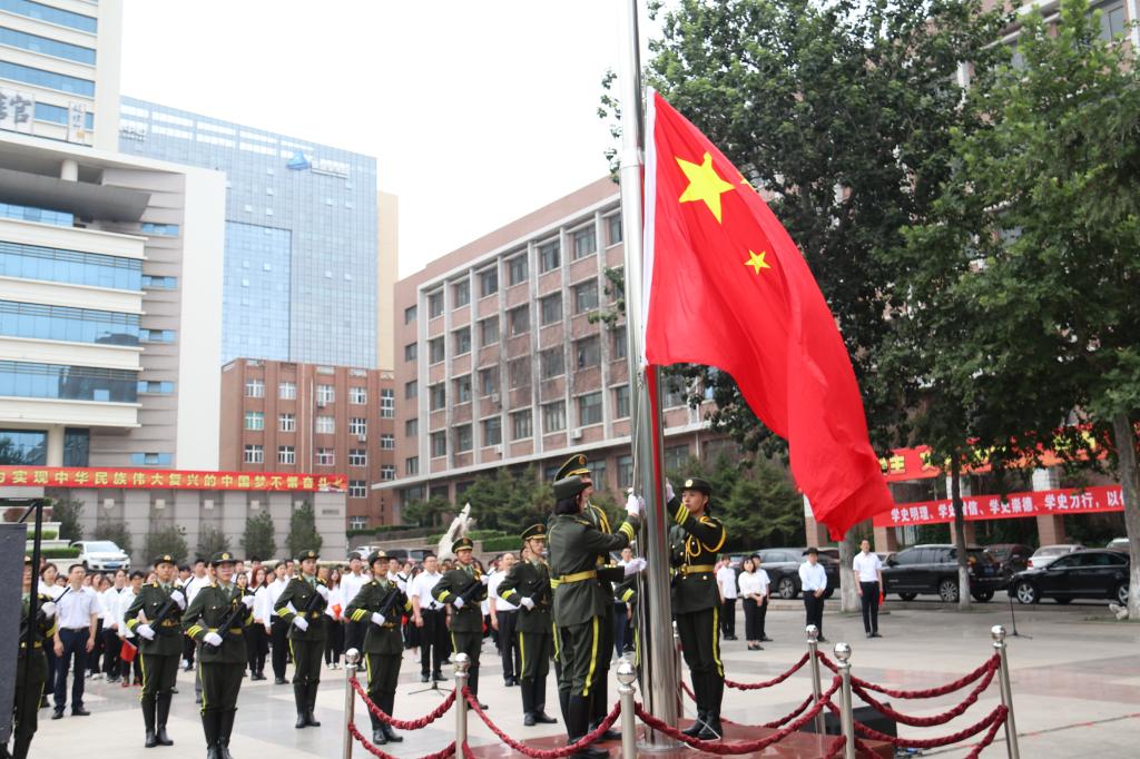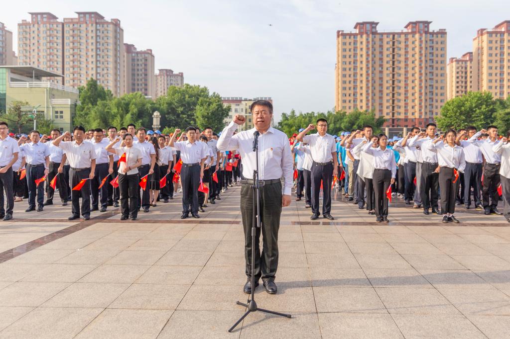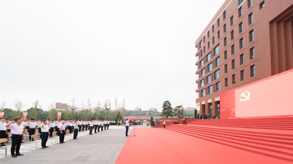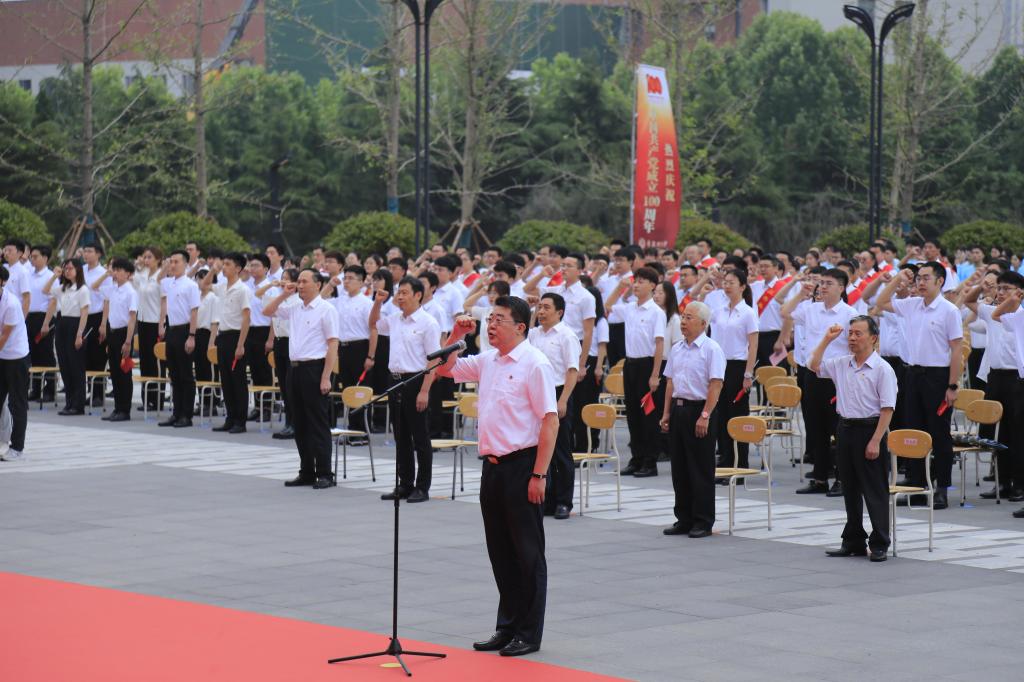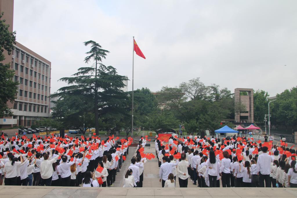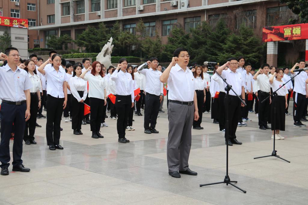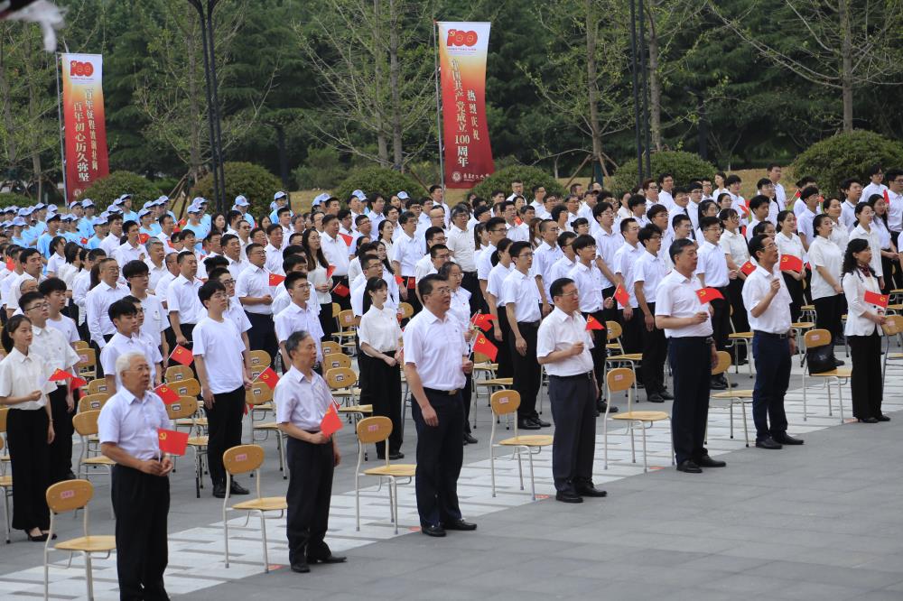 上午7:00,永利集团3044官网欢迎您庆祝中国共产党成立100周年升国旗仪式在三个校区同步举行。当雄壮激昂的《义勇军进行曲》奏响,五星红旗冉冉升起,全场高声齐唱国歌,瞬间点燃了师生满腔炽热的爱国之情。国旗飘,党旗红,誓言铮铮鉴初心。面对鲜红的党旗,党委书记王亚军领誓,新发展党员、与会老党员高举右手,握紧拳头,庄严宣誓:“我志愿加入中国共产党,拥护党的纲领,遵守党的章程,履行党员义务……”铿锵有力的誓言在广场上空回荡,是学校全体党员初心使命的再宣誓,是学校全体师生接续奋斗的再出发。