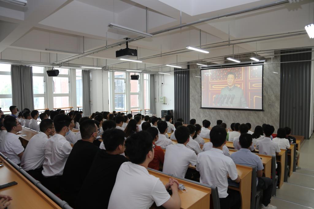 党委副书记、校长谭秀森表示,习近平总书记在庆祝大会上的重要讲话气势磅礴、催人奋进,充分彰显了100年来我们党矢志践行初心使命、团结带领人民写下的壮丽篇章,鼓舞和坚定了我们创造美好生活、夺取更大胜利的信心和决心。我们要认真学习领会习近平总书记重要讲话精神,坚持社会主义办学方向,落实立德树人根本任务,加快推进大学治理体系与治理能力现代化,在高水平大学和高水平学科建设、“十四五”建设进程中,着重在提升人才培养质量、凝练学科特色、强化科研和服务社会能力、加强人才队伍建设、深化国际合作等方面下功夫,坚持内涵式高质量发展,主动服务师生,为党育人、为国育才,在服务国家重大战略、地方经济社会发展中提供人才智力支持,为全面建成社会主义现代化强国贡献理工力量、展现理工担当。