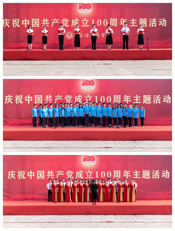 7时10分,由临沂校区师生带来的诗朗诵《百年颂歌》,带领大家回顾了100年来中国走过的民族复兴之途、改革开放之路,展现了中国共产党带领中国人民走上了建设富强民主文明和谐美丽的社会主义现代化强国的征程;师生大合唱《唱支山歌给党听》、《没有共产党就没有新中国》,美妙熟悉的旋律,串起一幅波澜壮阔的时代画卷,带领我们感受党的百年初心使命和在历史发展中的壮丽篇章。慷慨激昂的歌声,重温我们党的伟大成就和光辉历程,让我们从党的百年伟大奋斗中汲取继续前进的智慧和力量。