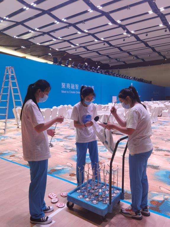 为全面做好志愿服务工作,保障峰会顺利进行,校团委积极开展志愿者招募选拔协调等相关工作,同学们克服期末复习、时间紧张等压力踊跃报名,最终选拔了278名志愿者全程参与本次峰会的志愿服务工作。出发前,校团委组织开展志愿者岗前动员培训会,增强志愿者的奉献精神和服务意识,助力志愿者更好地展现青春风采。同时,我校志愿者积极参加团市委组织的大型赛会志愿服务知识与技能、接待礼仪、防疫知识专项培训等通识培训,参与岗前实际演练,为迎接峰会的到来全面做好充分准备。