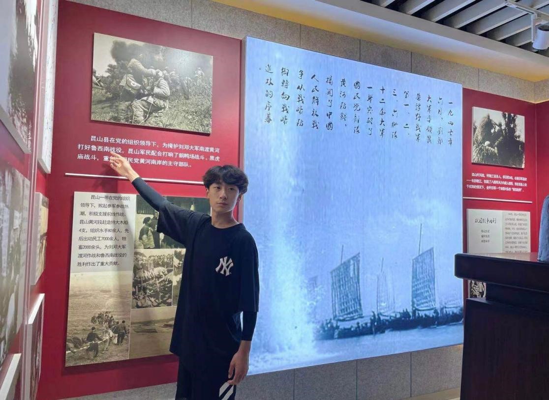 计算203班刘昀鑫在暑假里来到济宁市梁山县档案馆,他的任务是向参观者介绍梁山县的历史文化以及抗日战争时期和解放战争时期梁山人民不畏牺牲、浴血奋战的峥嵘岁月。“1947年,刘邓大军率鲁豫野战军一举突破了黄河防线,揭开了中国人民解放军战略进攻的序幕。这幅照片就是鲁西南战役经要图......”铿锵有力,声情并茂,刘昀鑫的讲解感染着来自五湖四海的观众们。“这小伙子一听就是行家”听到一位前来参观的大爷对他的评价,刘昀鑫打心底里高兴。“宣讲党史,传承红色文化,弘扬革命精神,是时代赋予我的责任!”刘昀鑫自信地说道。