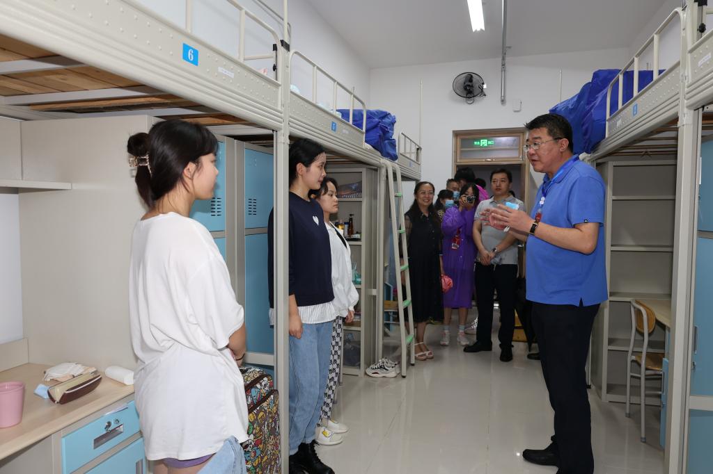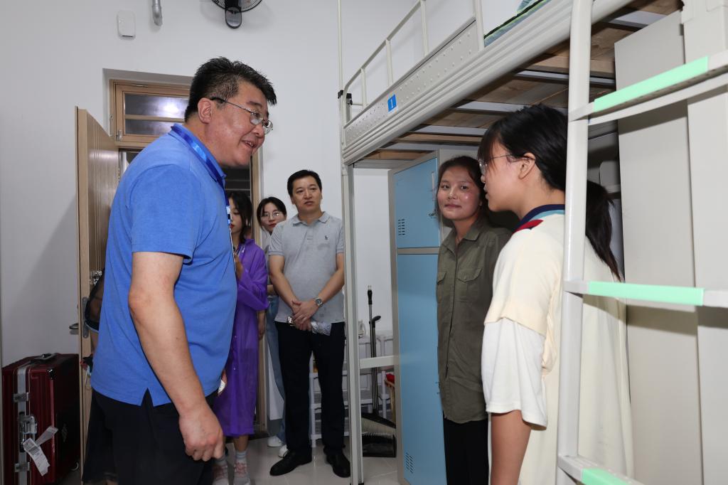 在学生公寓,王亚军与新生亲切交流,详细询问了新生入校感受以及住宿、生活等情况。希望同学们尽快转变角色,熟悉校园环境,以积极的心态和良好的面貌适应大学生活,珍惜大学时光,养成自主学习、独立生活的良好习惯,做好大学学业和人生目标规划,通过不懈奋斗去实现梦想。