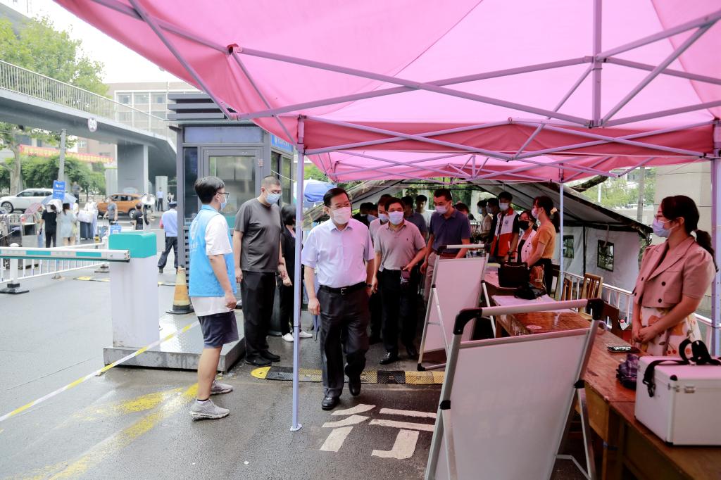 上午9点,王亚军一行深入西海岸新区主校区新生报到各现场,认真询问新生报到情况。在学校门口,100余顶帐篷搭起的300米“风雨长廊”,为雨中报到的新生提供了从校门口到校内摆渡车的温馨通道,有力保障了新生入校的顺畅、安全。王亚军在肯定迎新工作组织周密、服务便捷、用心暖心的同时,勉励大家以饱满的热情为新生提供贴心优质的服务,把党史学习教育的成效切实体现到为新生服务的工作中,将学校的温暖传递给新同学。