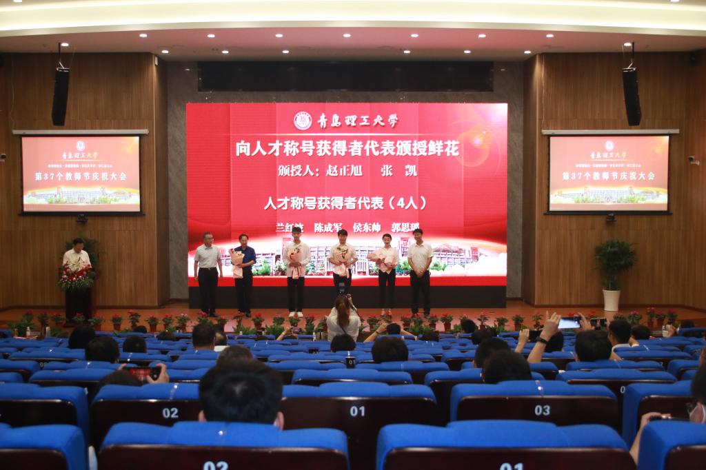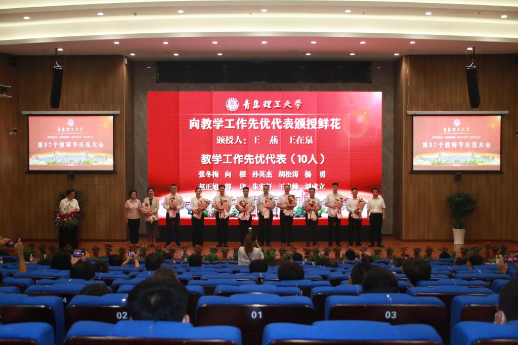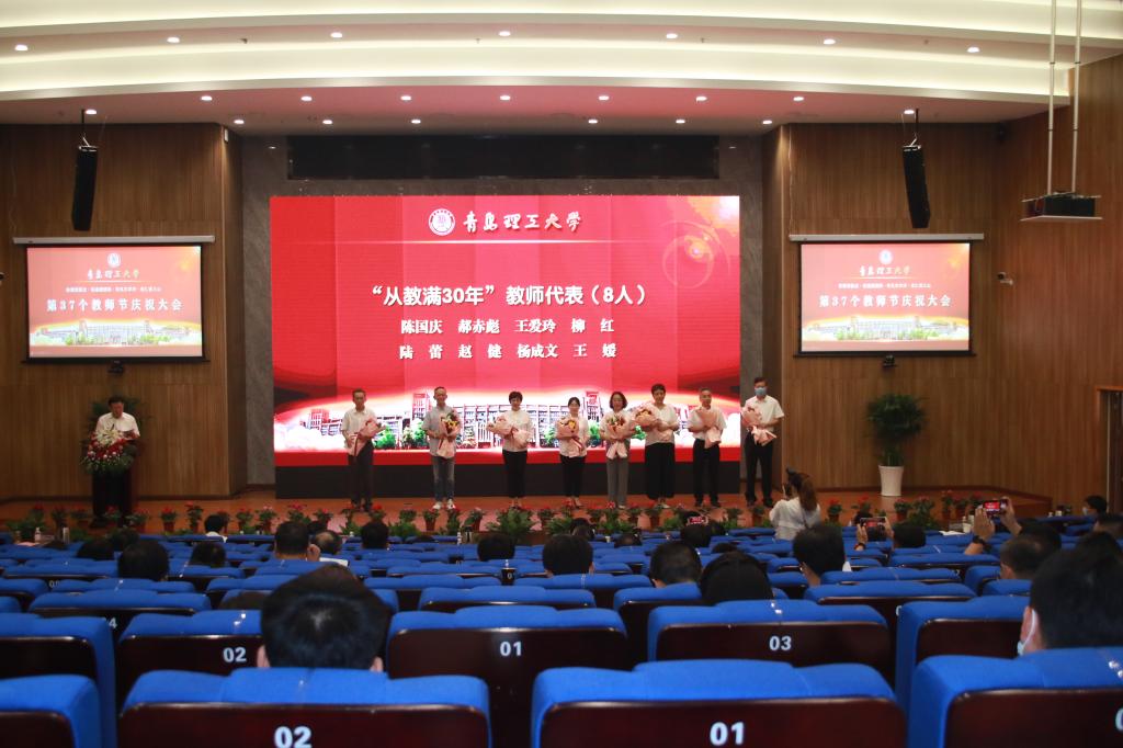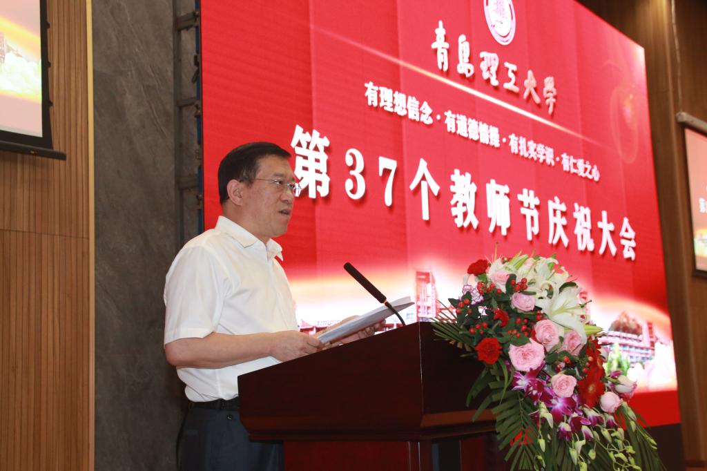 赓续百年初心,担当育人使命。9月10日,在第37个教师节来临之际,永利集团3044官网欢迎您在西海岸新区主校区报告厅隆重举行教师节庆祝大会。党委书记王亚军代表学校向广大教职员工致以节日的祝贺并讲话,党委副书记、校长谭秀森主持大会。参加大会的有学校领导班子成员、各二级党委(党总支)书记,各教学院部、职能部门、直属单位主要负责人,优秀教职工代表、新入职青年教师代表、优秀学生代表。