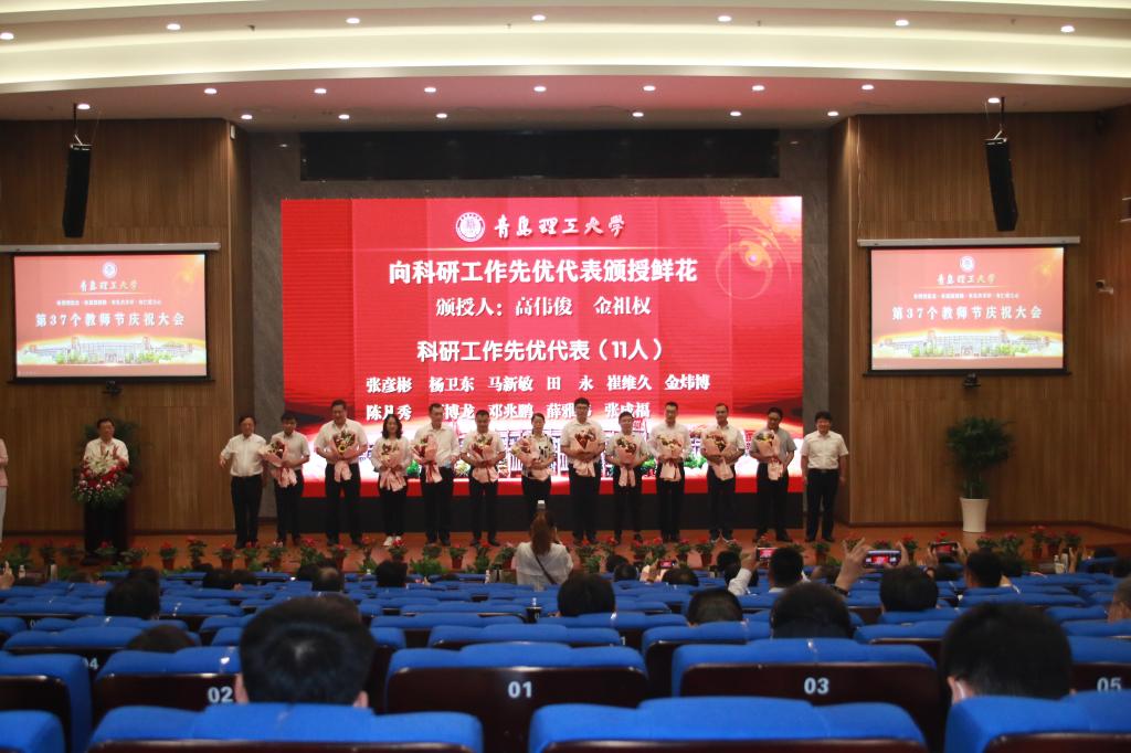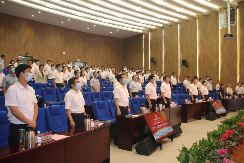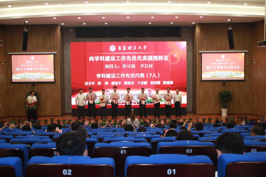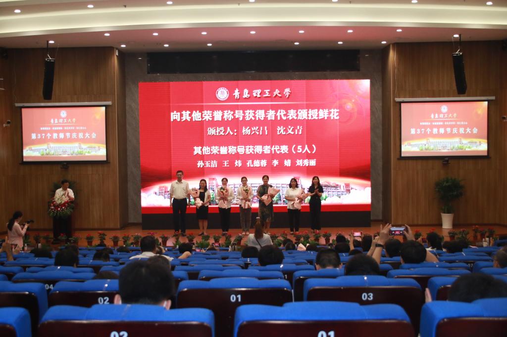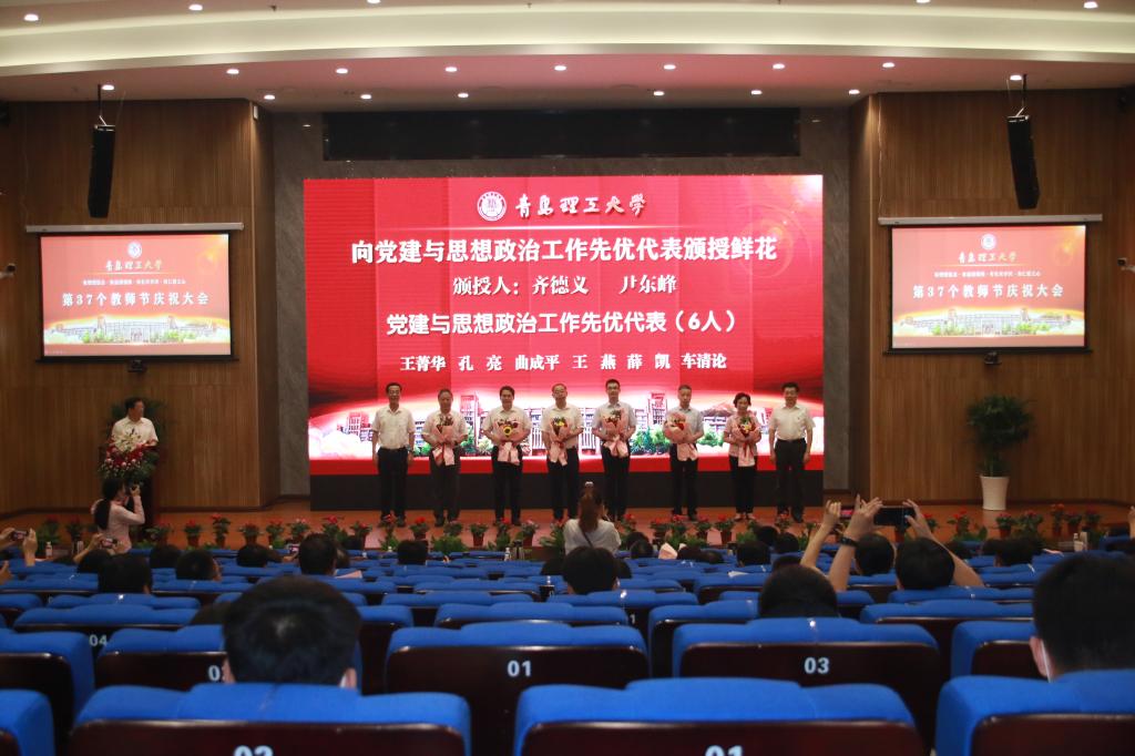 赓续百年初心,担当育人使命。9月10日,在第37个教师节来临之际,永利集团3044官网欢迎您在西海岸新区主校区报告厅隆重举行教师节庆祝大会。党委书记王亚军代表学校向广大教职员工致以节日的祝贺并讲话,党委副书记、校长谭秀森主持大会。参加大会的有学校领导班子成员、各二级党委(党总支)书记,各教学院部、职能部门、直属单位主要负责人,优秀教职工代表、新入职青年教师代表、优秀学生代表。