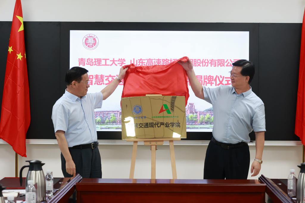 9月26日下午,我校与山东高速路桥集团股份有限公司联合成立“智慧交通”现代产业学院揭牌仪式在学校综合服务中心301会议室举行。山东高速集团有限公司总工程师、山东高速路桥集团股份有限公司党委书记、董事长周新波,山东高速路桥集团股份有限公司总经理助理荆玉才等企业领导,我校党委副书记、校长谭秀森及教务处、合作发展处(服务地方办公室)、土木工程学院等部门负责人出席揭牌仪式。揭牌仪式由党委常委、王在泉副校长主持。