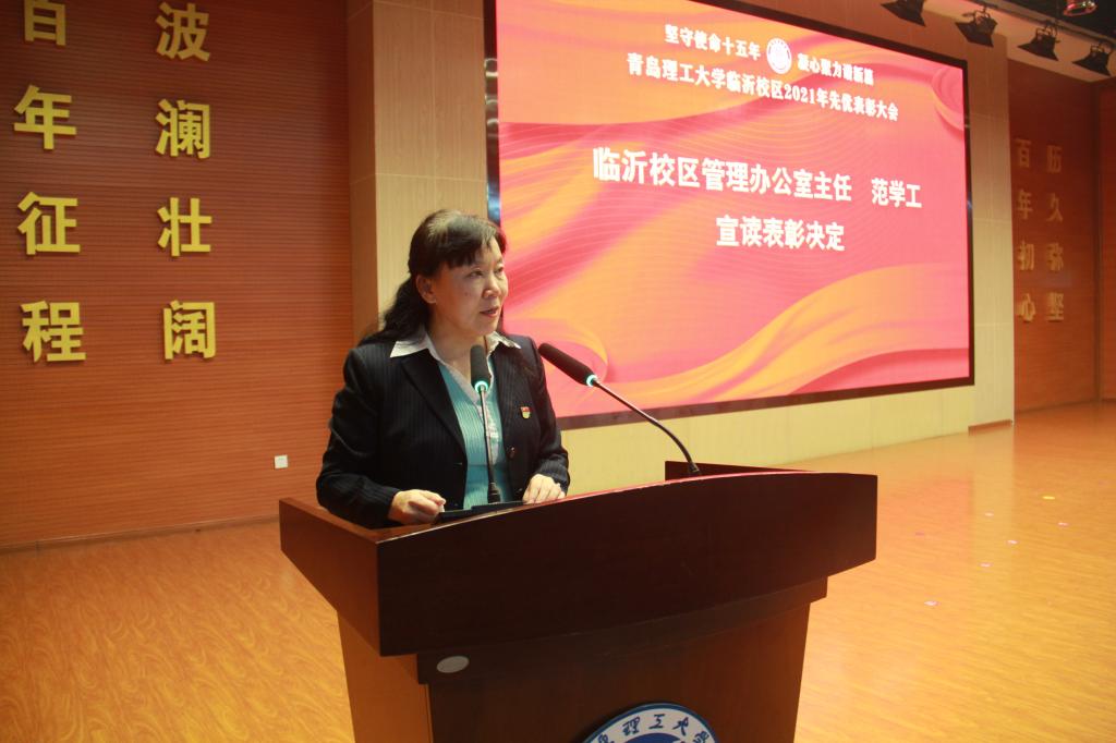 本次会议以“坚守使命十五年,凝心聚力谱新篇”为主题。大会在嘹亮的国歌声中拉开帷幕,校区管理办公室主任范学工宣读表彰决定,对在党建与思想引领、教育教学、科研与学科建设等工作中作出突出贡献的教职工集体、个人和在校区工作十五年的教职工,以及优秀学生代表、社会服务人员代表进行了表彰。
