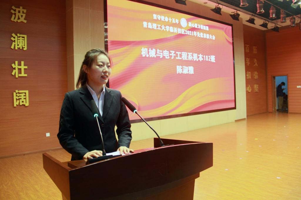 校区第一批入职教师代表、校区学生工作部主任、团委书记刘宗庆,优秀学生代表机械与电子工程系机本182班陈淑雅作为获奖代表发言。