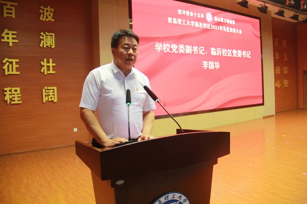 李国华在讲话中指出,举行表彰大会是对临沂校区成立15周年的热烈庆祝,是对校区近年来发展成绩的回顾和总结,更是对付出辛劳、做出贡献的先进代表的感谢和致敬。李国华系统总结临沂校区办学历程及取得的办学成就,深情回顾和感谢临沂校区创业者、建设者、奉献者为校区建设发展付出的艰辛努力以及为校区铸就的宝贵精神品格。