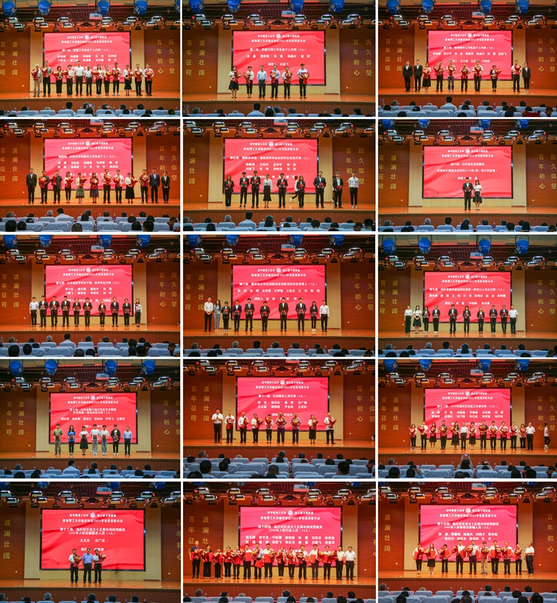 校区老领导全恩厚、张伟星、朱卫东、孙张飞、王西长、赵常德、王建启上台接受师生代表献花后向受表彰人员颁奖,受表彰在校学生代表的学业导师、班主任为他们颁奖,学生代表为教育教学先进工作者颁奖,整个会场喜庆庄重。