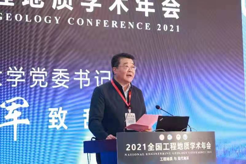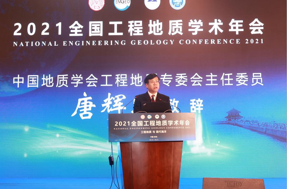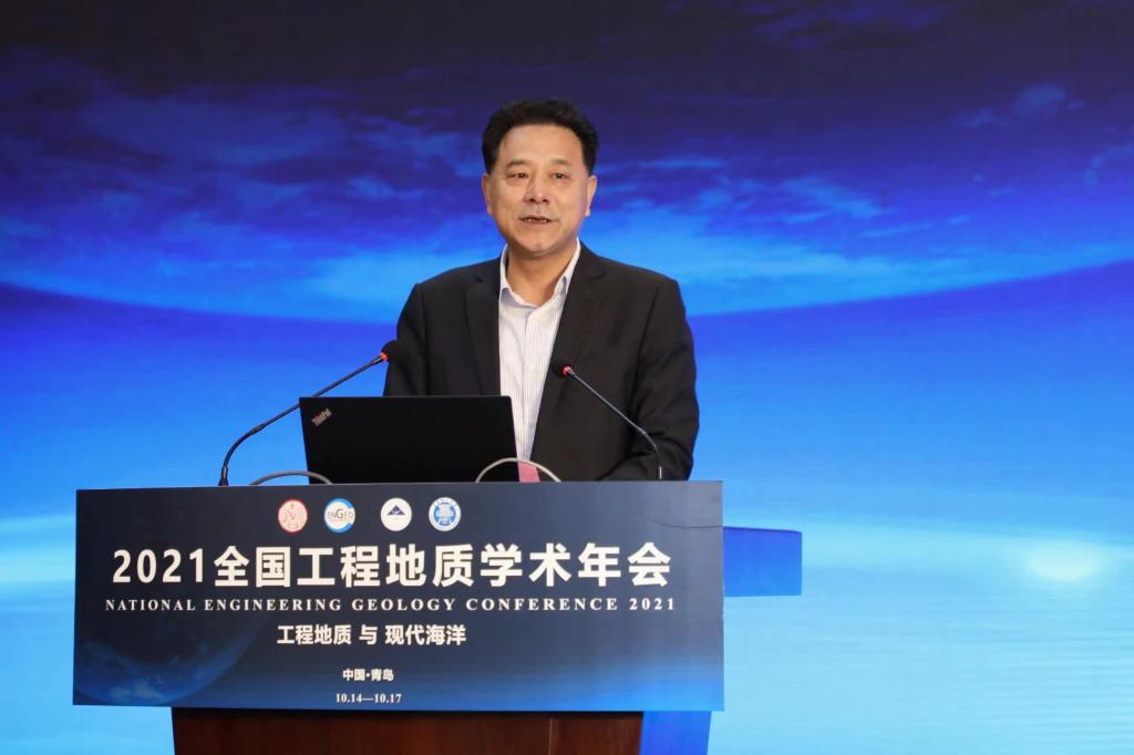 2021年10月15日,全国工程地质学术年会在青岛红岛国际会展中心隆重开幕。本次学术年会由中国地质学会主办,中国地质学会工程地质专业委员会和我校共同承办。国家自然科学基金委、中国科学院地质与地球物理研究所、长安大学、中国地质大学(武汉)等45家科研院所、高校和企事业单位支持协办。会议采用线上线下相结合的方式举行,来自全国的高校、科研院所和企事业单位的代表们到场参会,超过十万人线上参会。开幕式由大会组委会副主席、永利集团3044官网欢迎您党委常委、副校长王在泉主持。