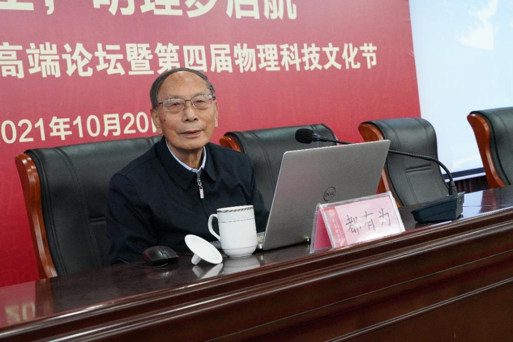 10月20日下午,南京大学教授、博士生导师、中国科学院院士都有为应邀来我校参加学校物理学术高端论坛暨第四届物理科技文化节,并为师生做了题为《创新是科学的灵魂》的学术报告。