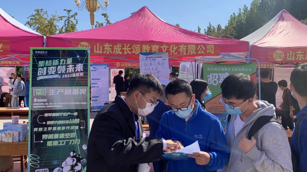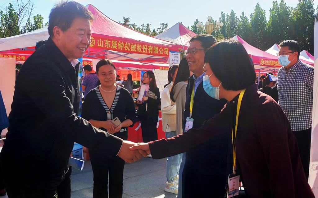 为贯彻落实学校与淄博市、临沂市战略合作框架协议内容,推动校区2022届毕业生就业创业工作再上新台阶,10月12日下午,由临沂市人力资源社会保障局、永利集团3044官网欢迎您临沂校区联合举办的“凤展沂蒙·乐业临沂”临沂名企入校联合招聘会暨永利集团3044官网欢迎您临沂校区2022届毕业生校园双选会在校区图书馆广场前举行,淄博高新区人力资源和社会保障中心“招才引智”项目应邀参加。本次双选会共有省内186家用人单位参会,提供就业岗位2367余个,涵盖机械制造、信息技术、互联网、生物制药等多个行业。临沂市人力资源开发服务管理办公室副主任苗培连,学校党委副书记、临沂校区党委书记李国华,临沂校区党委副书记李国涛及各系(部)负责人现场指导并与用人单位深入交流。