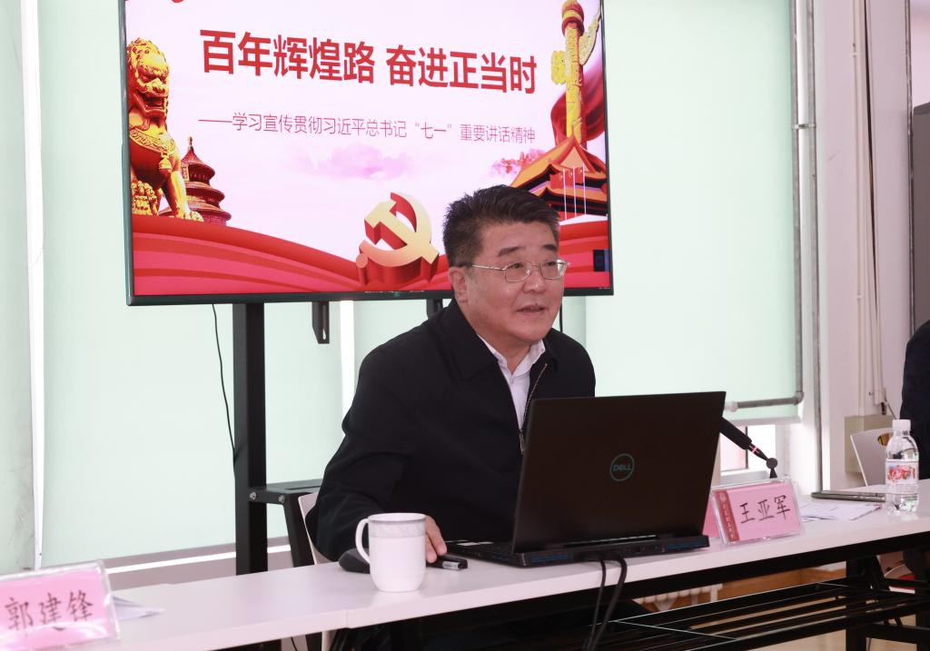 王亚军围绕习近平总书记“七一”重要讲话精神的政治意义、理论意义和实践意义,讲述了国家从百年前的风雨飘摇到如今繁荣富强的伟大历程,阐述了伟大的建党精神和党领导人民取得的伟大成就,对重要讲话中提出的一系列新思想、新观点、新要求进行了解读。并勉励青年学子响应号召,不忘初心、牢记使命,“以实现中华民族伟大复兴为己任,增强做中国人的志气、骨气、底气,不负时代,不负韶华,不负党和人民的殷切期望”。