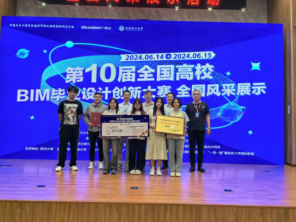 6月14至15日,第十届全国高校BIM毕业设计创新大赛风采展示活动暨颁奖典礼在我校黄岛校区举行,来自全国84所院校的300余位师生参会,全国遴选的9组优秀团队进行了精彩的现场路演,91份优秀作品参与风采展示。中国土木工程学会建筑市场与招标投标研究分会理事长赵桂君,中国土木工程学会建筑市场与招标投标研究分会原理事长安连发,我校党委常委、副校长郭建锋,副校长苗吉军,五邑大学党委常委、副校长董超俊,广联达副总裁、数字建筑研究院院长刘刚,广联达数字教育高教业务总经理况诗文,我校土木工程学院院长侯东帅、管理工程学院院长荀志远等领导嘉宾出席本次活动。开幕式由我校创新创业学院院长李俊主持。