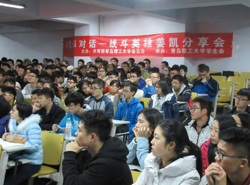 3月16日晚,“与信仰对话”——战斗英雄姜凯分享会在市北校区1教400阶举行。来自市北校区各学院的300余名师生共同聆听报告。