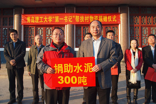 仪式上,沂州集团向我校“第一书记”帮扶村捐赠300吨爱心水泥,刘龙海副书记代表学校接受捐赠并向沂州集团赠送锦旗。