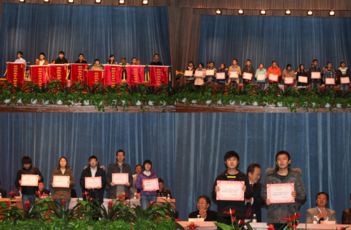 表彰会上,李东副校长宣读了《关于表彰2010-2011学年学生先进集体和先进个人的决定》。2011-2012学年,我校学生发扬“严谨、勤奋、求实、创新”的优良校风,积极进取、争先创优,涌现出了696名优秀学生标兵、2146名优秀学生,994名优秀学生干部、1488名优秀团员、20个优良学风标兵班、129个优良学风班、107个优秀团支部、150个星级文明标兵宿舍等一大批学生先进个人与先进集体,标志着我校育人工作再上新台阶。
