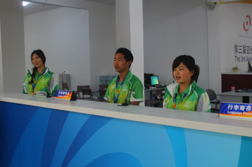 据介绍,志愿者在亚沙村预开村期间与赛事期间承担相应岗位职责,在指定的时间和岗位参与志愿服务工作。我校志愿者全部在运动员村开展志愿服务,部分志愿者被分配在欢迎中心,负责协助首次入村的各NOC运动员和随从官员办理手续、提供行李寄存服务、负责人员及非集装箱行李由机场到运动员村的运输等志愿服务工作;语言志愿服务者分配在住宿岗位,负责各住宿楼的语言翻译工作;访客办证中心负责访客的迎接与引导、餐饮志愿者负责运动员餐厅秩序维持及语言服务、商业志愿者协助园区售卖及咨询服务。