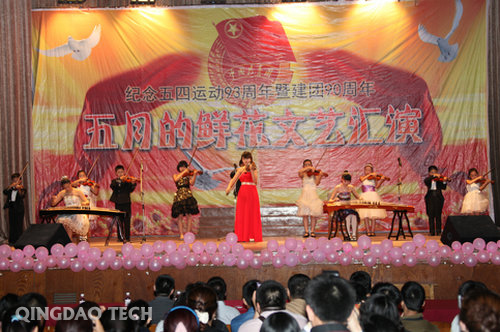 为纪念五四运动93周年暨建团90周年,进一步激发广大青年爱国、爱党和爱团的热情,5月24日晚7点,由校团委主办的“五月的鲜花”文艺汇演在四方校区礼堂拉开帷幕。校团委负责人、各学院党总支副书记、团总支书记及各学院学生代表观看了本场晚会。