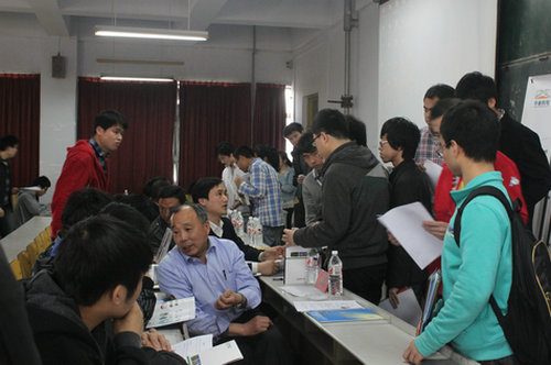 4月26日下午2点,由青岛市机械电子工程学会、机械工业协会、招就办和机械学院共同主办的“2012年青岛市机械行业重点企业校园专场招聘会”在一教200阶举行。青岛机械协会秘书长马天刚、青岛市机械工业总公司技术中心副主任谭云安、人力资源部部长耿炳丽、机械学院党政领导出席招聘会,机械学院专业老师、2008级就业辅导员和学院2012级毕业生参加了招聘会。
