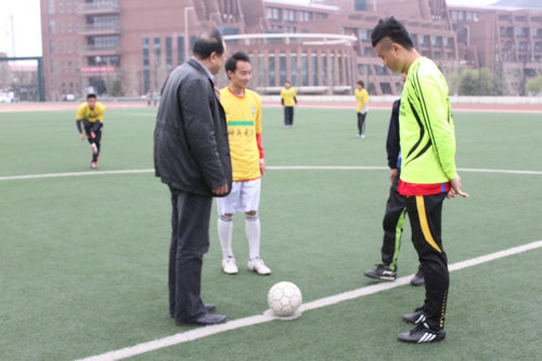 体育部主任宋刚为“校长杯”足球赛开球
