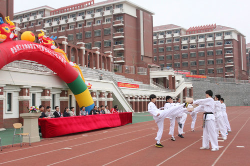 校社团联合会随后进行了精彩的表演,跆拳道、双节棍、武术、街舞等节目展现了社团成员蓬勃的朝气与积极向上的精神风貌,赢得了观众的喝彩。最后,体育部宋刚主任为“校长杯”足球赛开球。