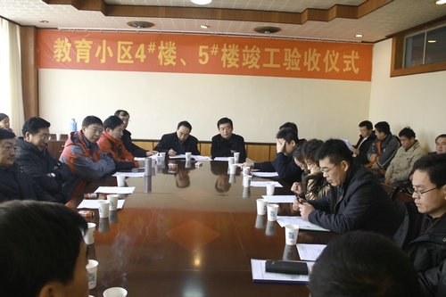 我校教育小区一期工程4#、5#楼主体工程和二次装修工程于2011年12月28日完成,住宅建设指挥部于12月29日组织了检查验收小组进行分户检查验收,12月30日举行了教育小区一期工程4#、5#楼竣工验收仪式。