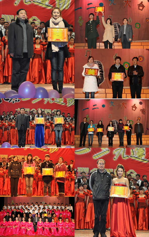 为深入贯彻落实党的十七届六中全会精神,加强大学生的爱国主义教育和革命传统教育,推动校园文化的发展和繁荣,近日,我校纪念“一二·九”运动七十六周年学生大合唱比赛分别在四方校区、嘉陵江路校区和长江路校区举行。校党委副书记杨向荣、副校长李东、校长助理朱申红、工会、校区办公室、学生处、团委等部门负责人及各学院师生观看了比赛。