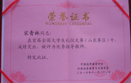 11月21日,由中国高等教育学会公共关系教育委员会举办的“礼仪2010.首届全国大学生礼仪大赛”在山东科技大学举行,我校人文学院刘聘老师担任本次大赛的评委工作,来自中国海洋大学、中国石油大学等11所高等院校的20多支代表队参加了本次大赛。我校派出两支参赛队,在指导老师宋青林教授的带领下参加了比赛。