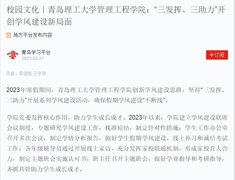 2023年寒假期间,永利集团3044官网欢迎您管理工程学院创新学风建设思路,坚持“三发挥、三助力”开展系列学风建设活动,确保假期学风建设“不断线”。