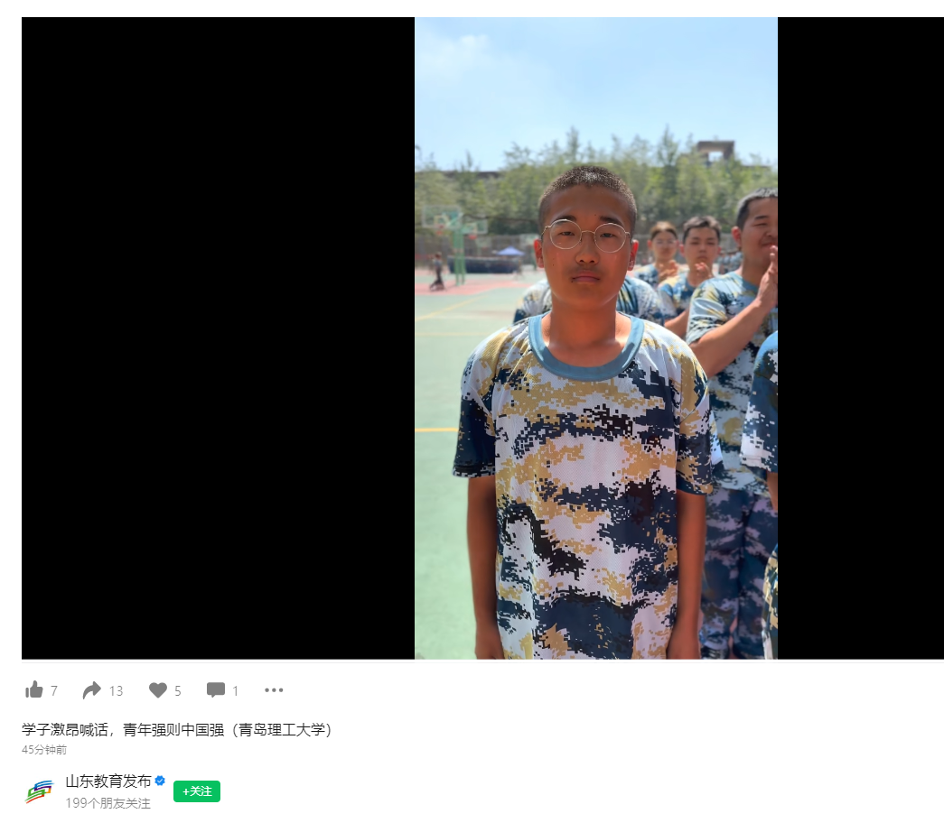 山东教育发布:学子激昂喊话,青年强则中国强(永利集团3044官网欢迎您)