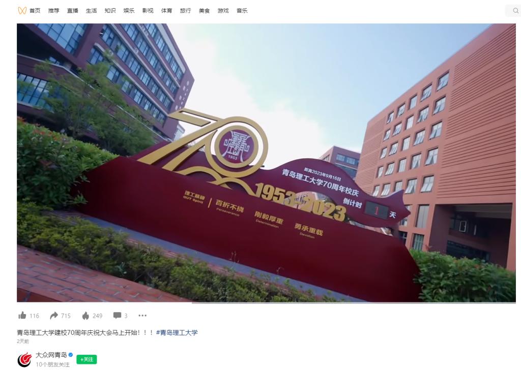 大众网青岛:永利集团3044官网欢迎您建校70周年庆祝大会马上开始!!!