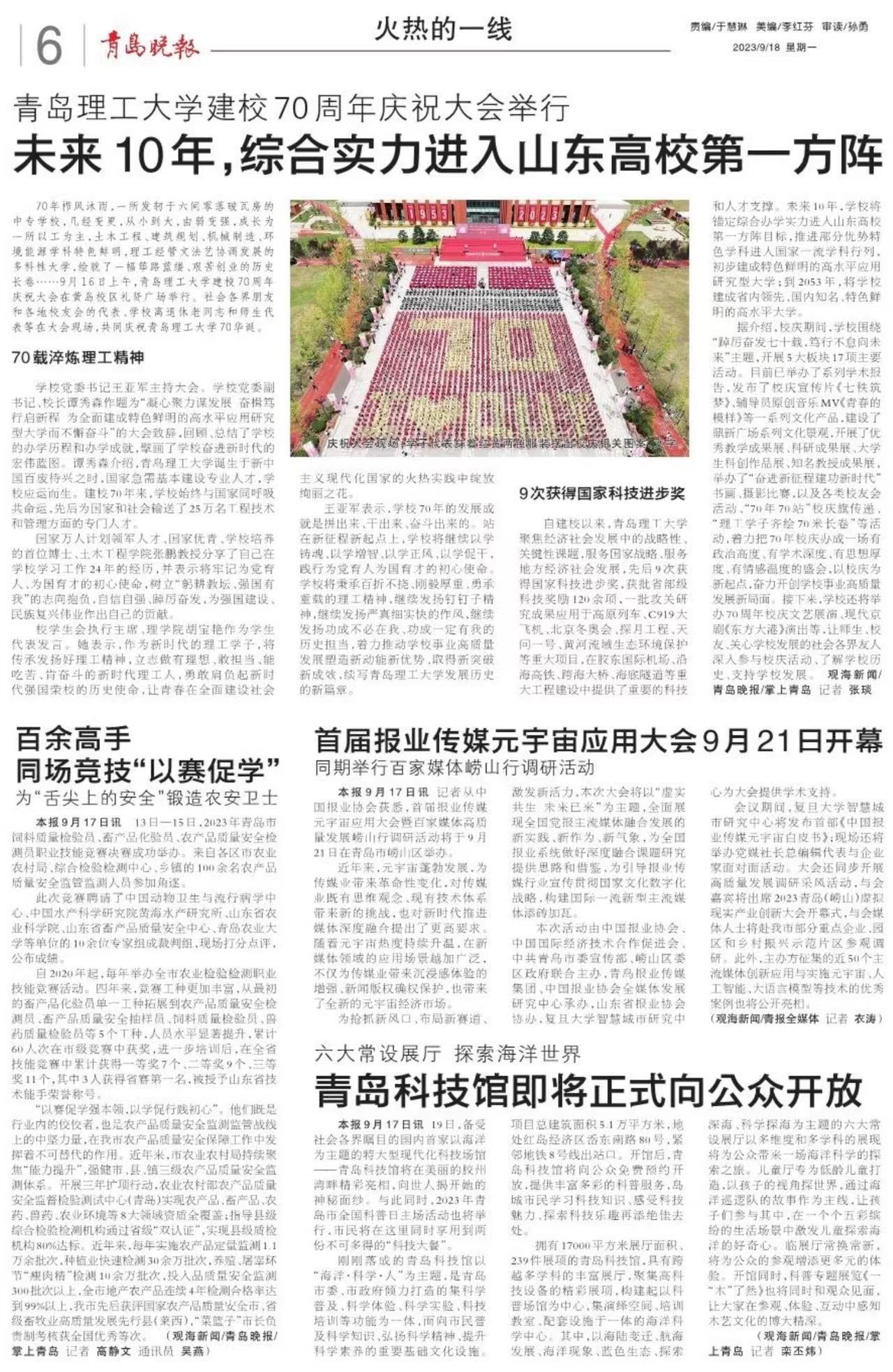 青岛晚报:永利集团3044官网欢迎您建校70周年庆祝大会举行