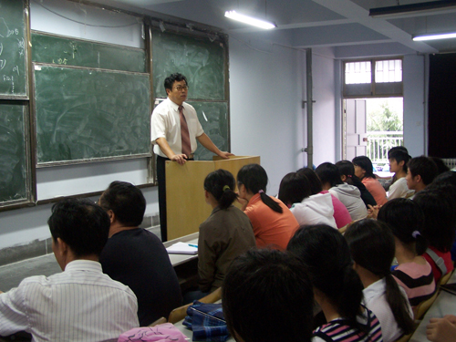 常务副院长郝赤彪首先就目前学校和学院的概况向新生作了简要介绍,并通过幻灯片展示了学校对黄岛新校区的总体规划设计和建设情况。指出我校在未来的几年中将以建设现代化、信息化、生态化、地域化、园林化及可持续发展的校园为目标,加快校园硬件设施建设,为在校学生提供一个良好的学习、生活环境。