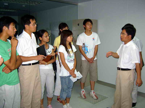 从车间出来后,同学们来到了自己的专业领域——山工机械的信息中心,在这里参观了公司的网络设备,使自己的专业知识在实践中得到了验证。信息中心是山工机械的重要管理部门,这里有6西格码,EPR等先进的企业管理理念。同学们近距离地接触了企业网络服务器和终端设备,看到了在课本以外的广阔天空。在参观过程中,同学们深化了对“系统”观念的理解,拓展了自己的专业知识,这对于学习“应用课程”的同学们无疑是最宝贵的经验。