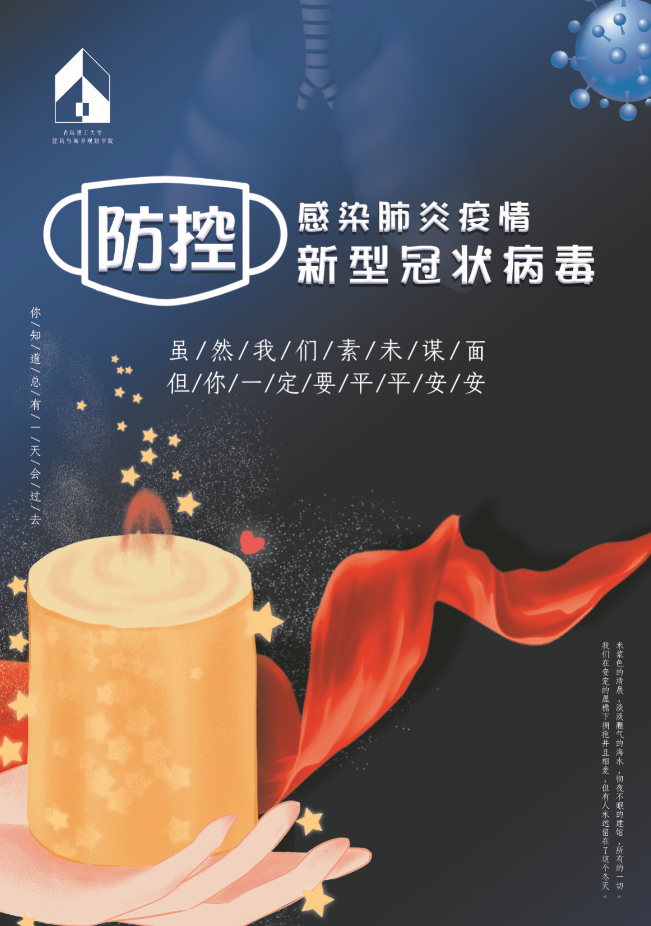 新型冠状病毒感染的肺炎疫情蔓延的严峻形势,全国各地纷纷采取防控疫情行动。为贯彻落实学校、学院关于加强疫情防控工作的部署和要求,建筑与城乡规划学院号召同学们活用起自己的专业技能,制作了系列“疫情防控”主题创意海报,为抗击疫情加油助力。