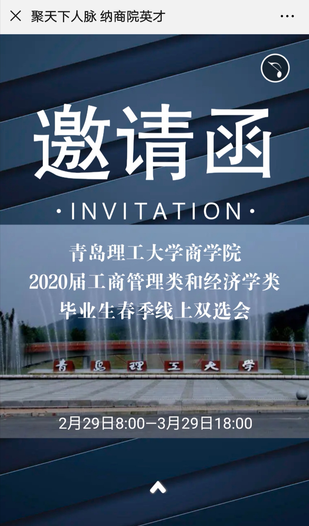就业是民生之本,“稳就业”不仅是“六稳”之首也是基石。今年毕业生人数再创新高,就业季遭遇新冠病毒疫情,毕业生就业面临“双重压力”。为积极响应国家疫情防控精神和落实稳就业的政策要求,商学院于2月29日启动2020届工商管理类和经济类毕业生春季线上双选会,双选会将持续一个月的时间,确保特殊时期“就业服务不打烊、线上招聘不停歇”。