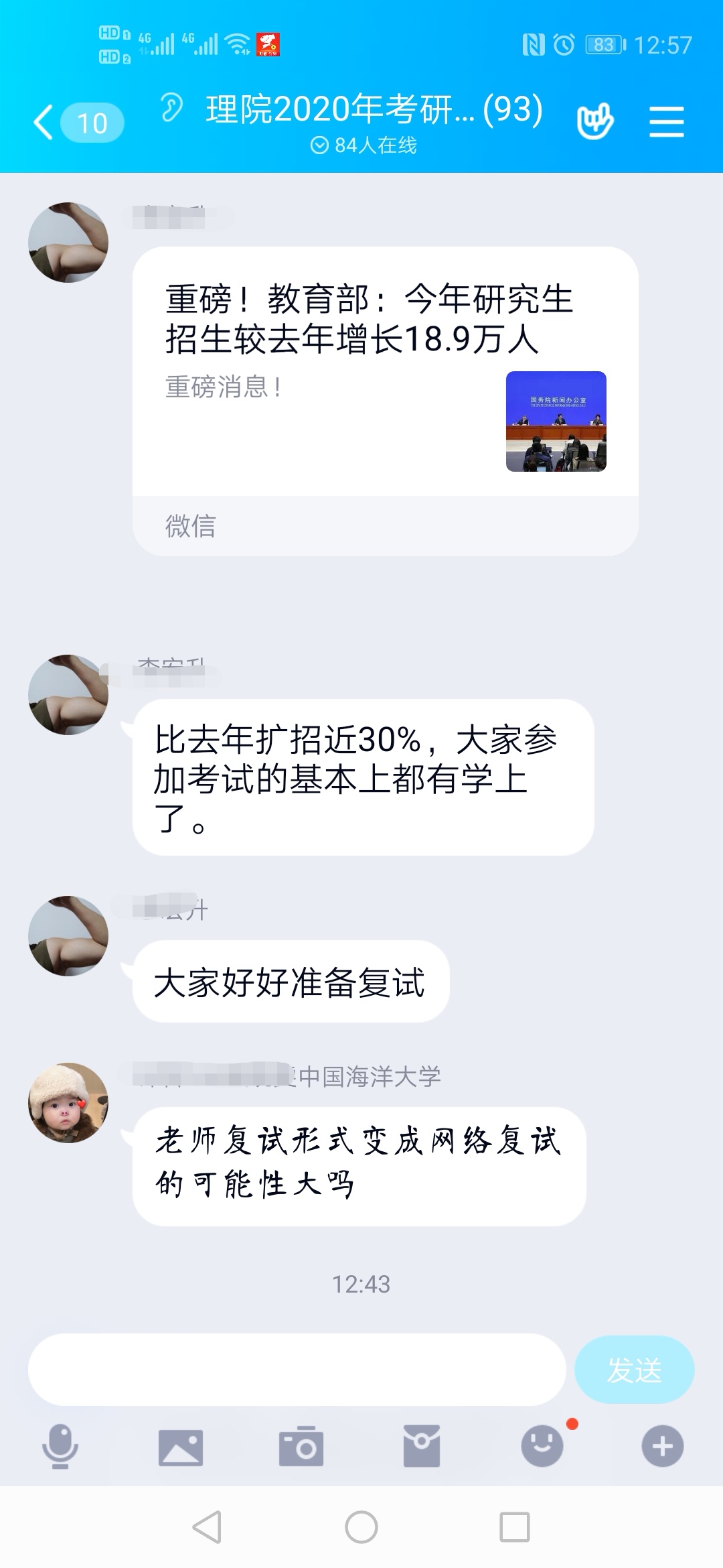 计科161李美春说道,没想到群里的大教授这么客气,为自己的提供了全方位的指导,让自己更加有信心面对接下来的复试。