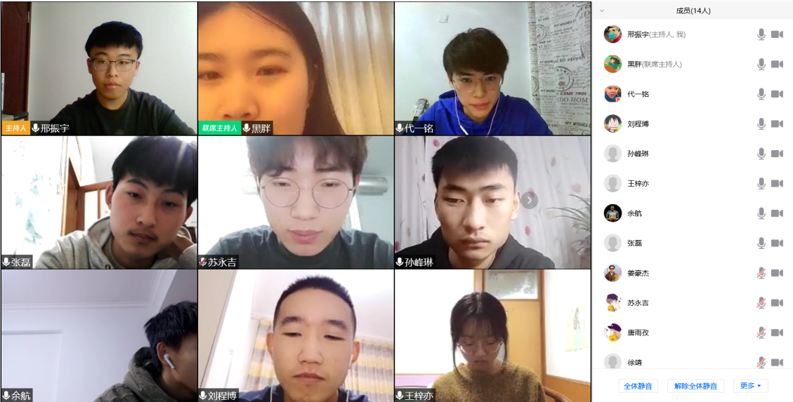 为保证正常教学秩序,减少疫情对学习的影响,年级辅导员杜诗琳老师通过在线视频会对同学们这一周的学习情况进行总结及指导,分析当前疫情防控的严峻形势,传达学校加强疫情防控的部署和要求;督促各位同学不可掉以轻心,应保护好自己,同时把疫情期间“停课不停学”落实好,合理安排时间进行运动训练,认真进行网络学习。