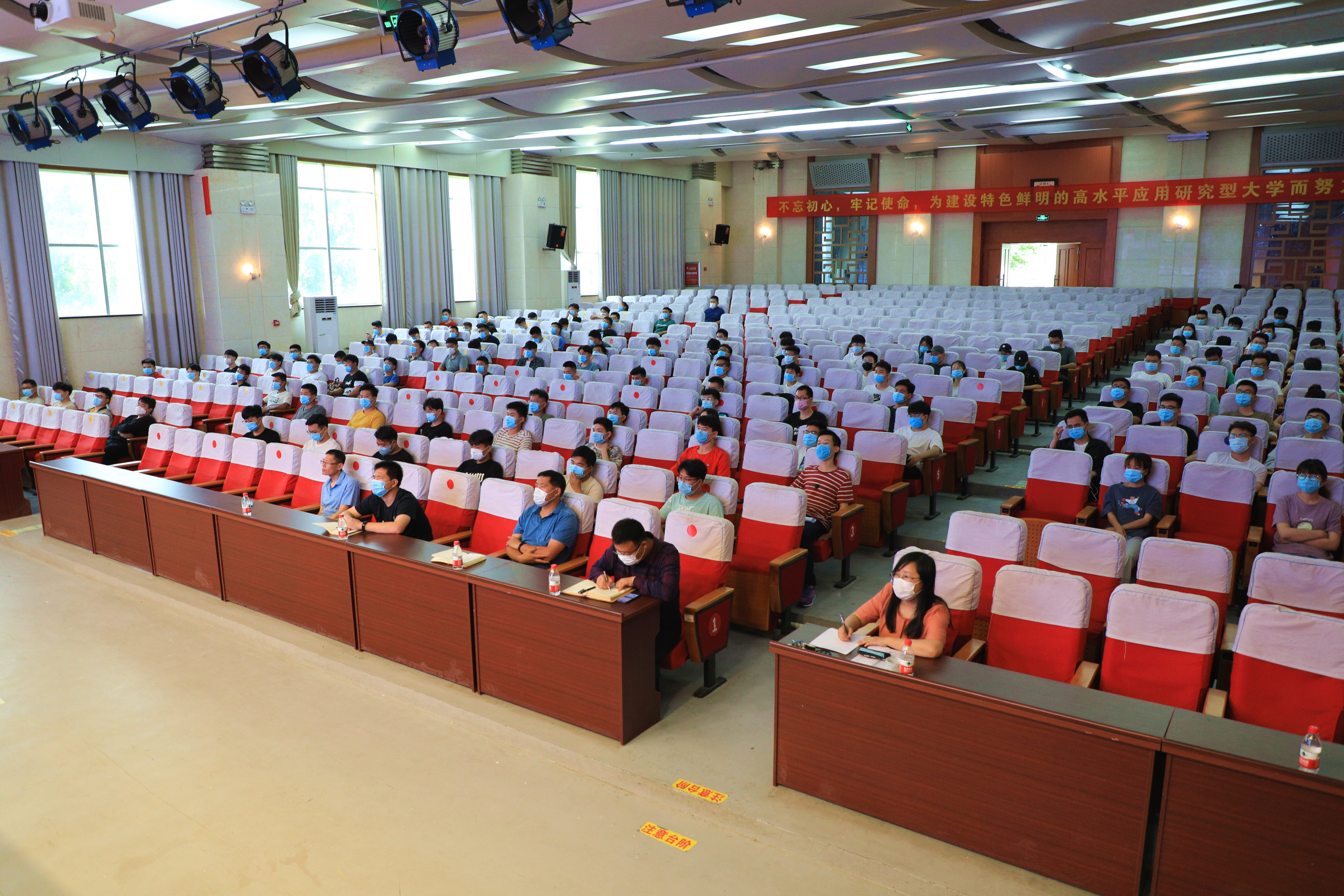 为深入贯彻落实习近平总书记关于统筹推进疫情防控和经济发展系列重要讲话精神,落实省教育厅关于上好复学第一课相关要求,切实做好校区疫情防控和返校开学工作,5月27日下午,校区党委常务副书记李国涛在图书馆报告厅为首批返校毕业年级学生讲授了一堂内容丰富、内涵深刻的爱国主义教育课、担当作为思政课。