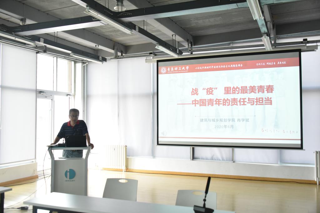期间,肖学斌多次与现场的同学互动,畅谈感受和体会,精彩授课引起了在场学生的强烈共鸣,整堂课图文并茂、精彩纷呈。建筑与城乡规划学院开展此次思政课,旨在激励青年学生弘扬抗疫精神,肩负时代责任,锤炼过硬本领,为实现中华民族伟大复兴的中国梦奉献青春力量。学生纷纷表示,这堂思政课不仅是一堂关于战“疫”的形势政策课,更是一堂鲜活的爱国主义教育课和青年成长的励志课,全面贯彻了当前“大思政”、“三全育人”工作理念,培树了广大青年学生的爱国意识和家国情怀。