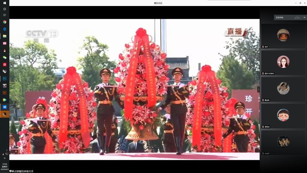 为深入推进社会主义核心价值体系,突出爱国教育主题,宣传抗日民族统一战线旗帜下全民抗战的历史功绩、中国人民抗日战争的历史意义和抗战精神,引导同学们深刻认识历史、纪念历史,9月3日上午,建筑与城乡规划学院建学182团支部组织全班同学在线上观看抗日战争暨反法西斯战争75周年直播。